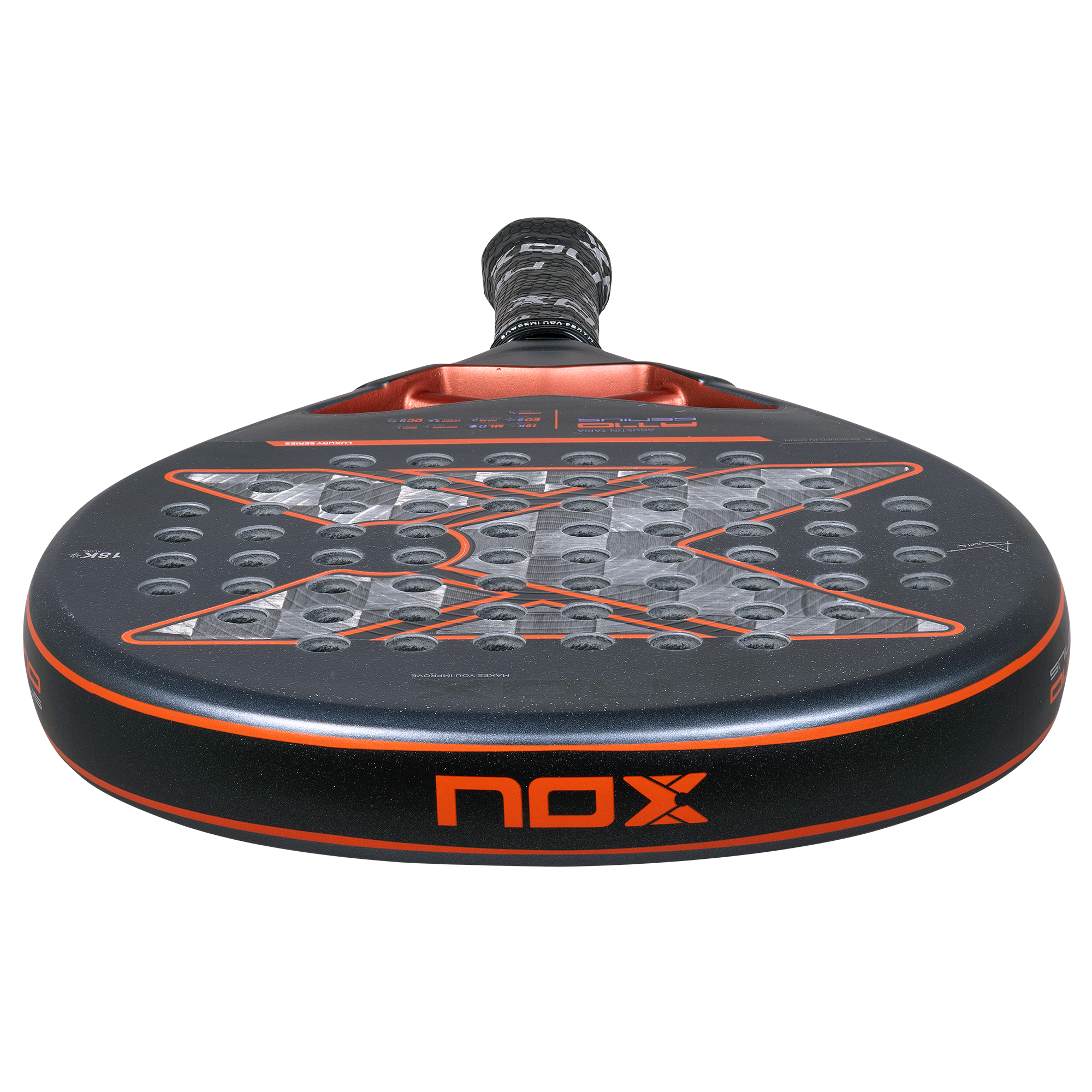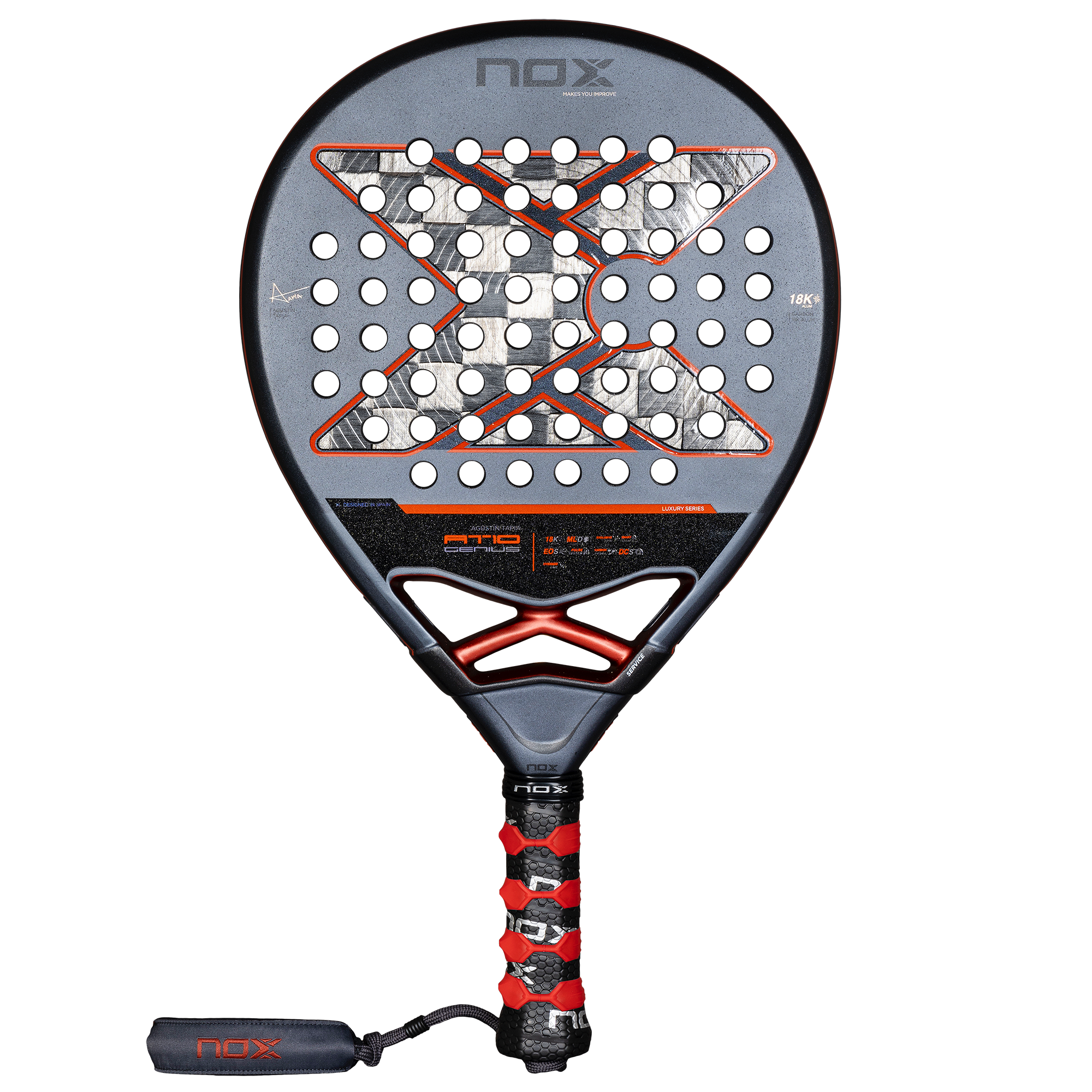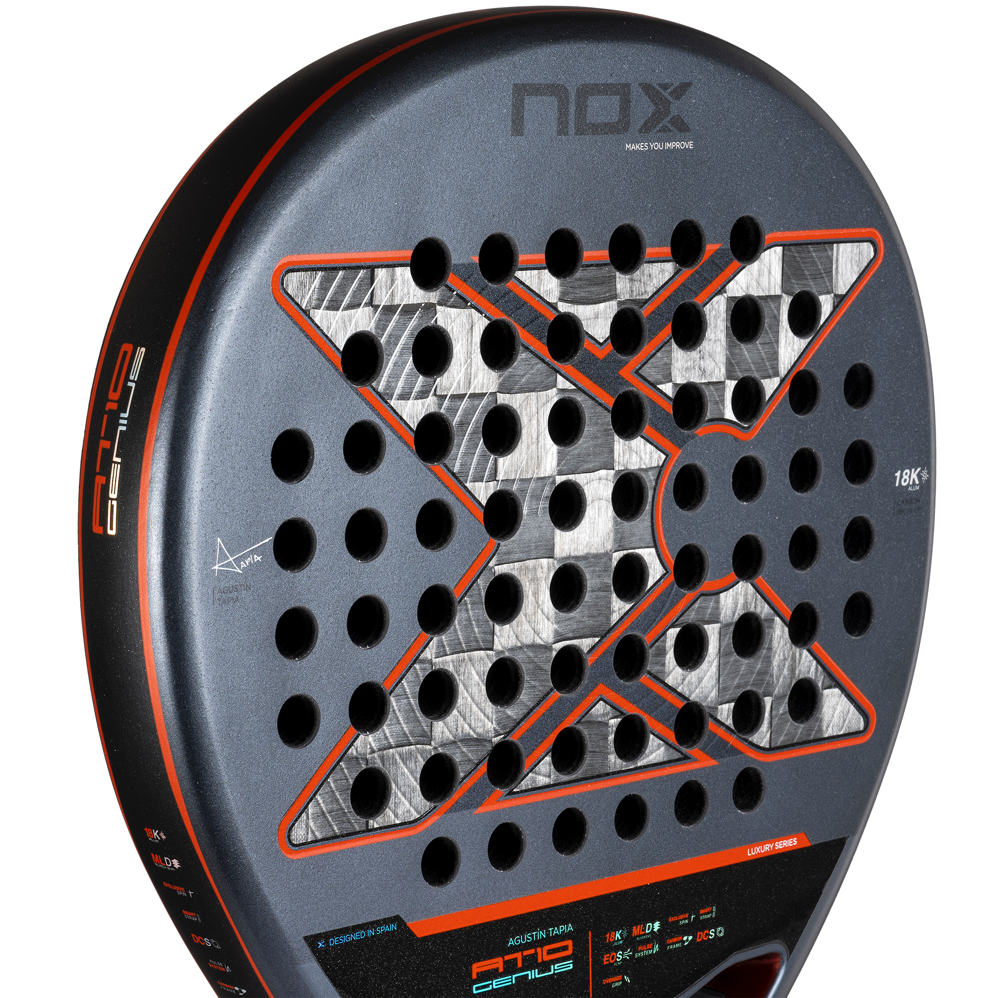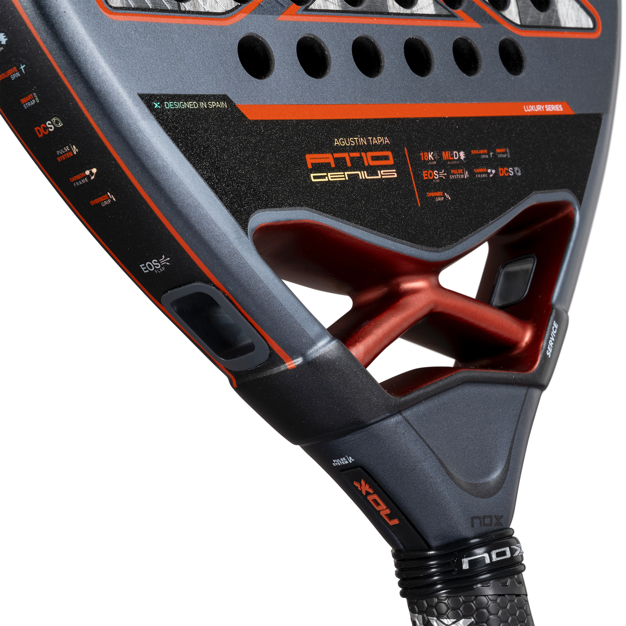 The AT10 Luxury Genius 18K Alum 2025 showcases a sleek and sophisticated design, featuring a dynamic color palette with metallic accents and Agustín Tapia's signature elements. The luxurious aesthetics not only make a bold statement on the court but also reflect the premium quality and meticulous craftsmanship that NOX is renowned for.